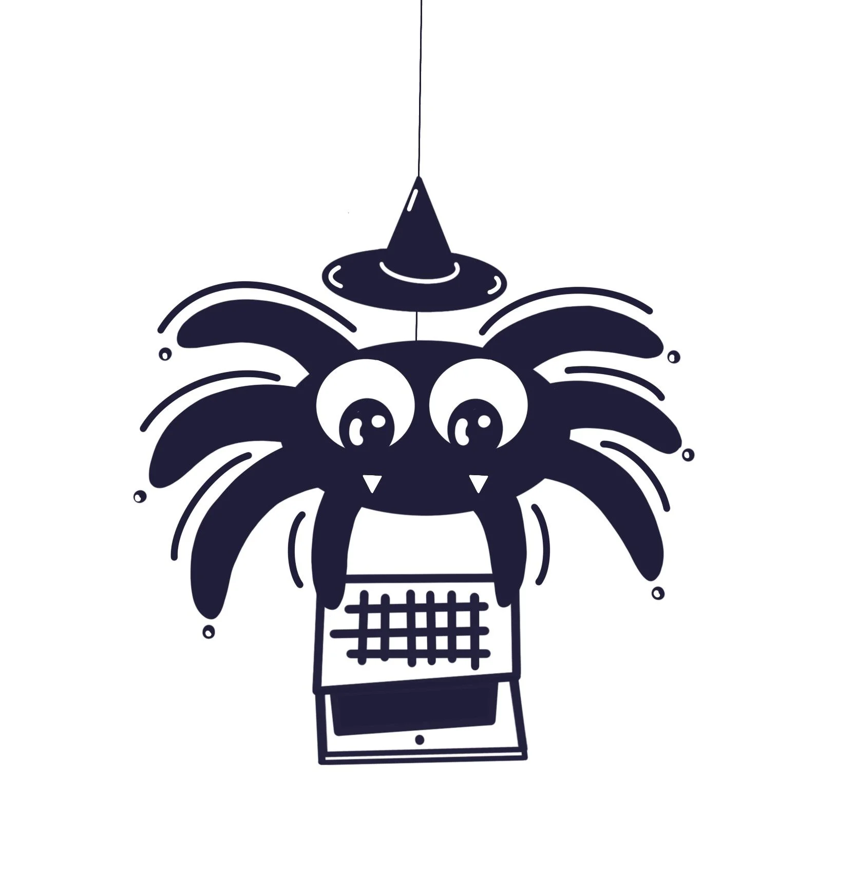 Day 2. Spiders. The only way to get over my fear is to make it cute so here you go. I gave him a MacBook because web will always make me think of the World Wide Web. This was fun. Also, I love witches so I gave her a witch hat because why not. Stayed true to the inktober theme by using digital ink in procreate.
